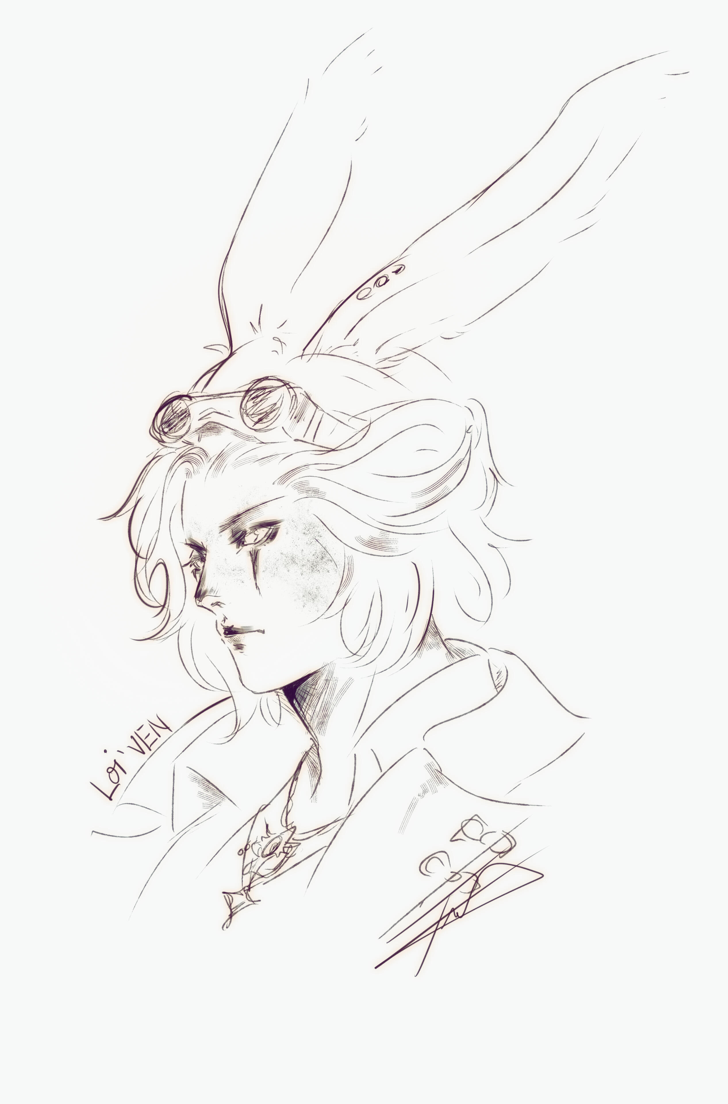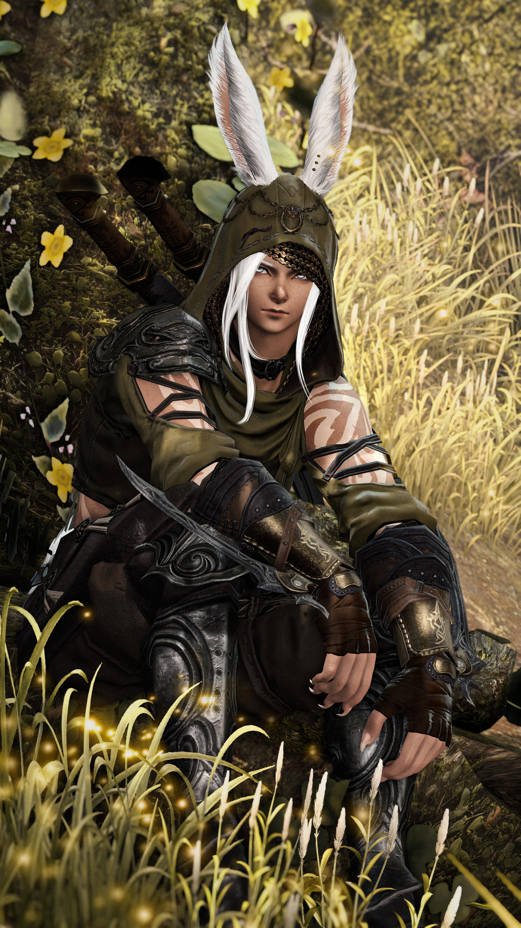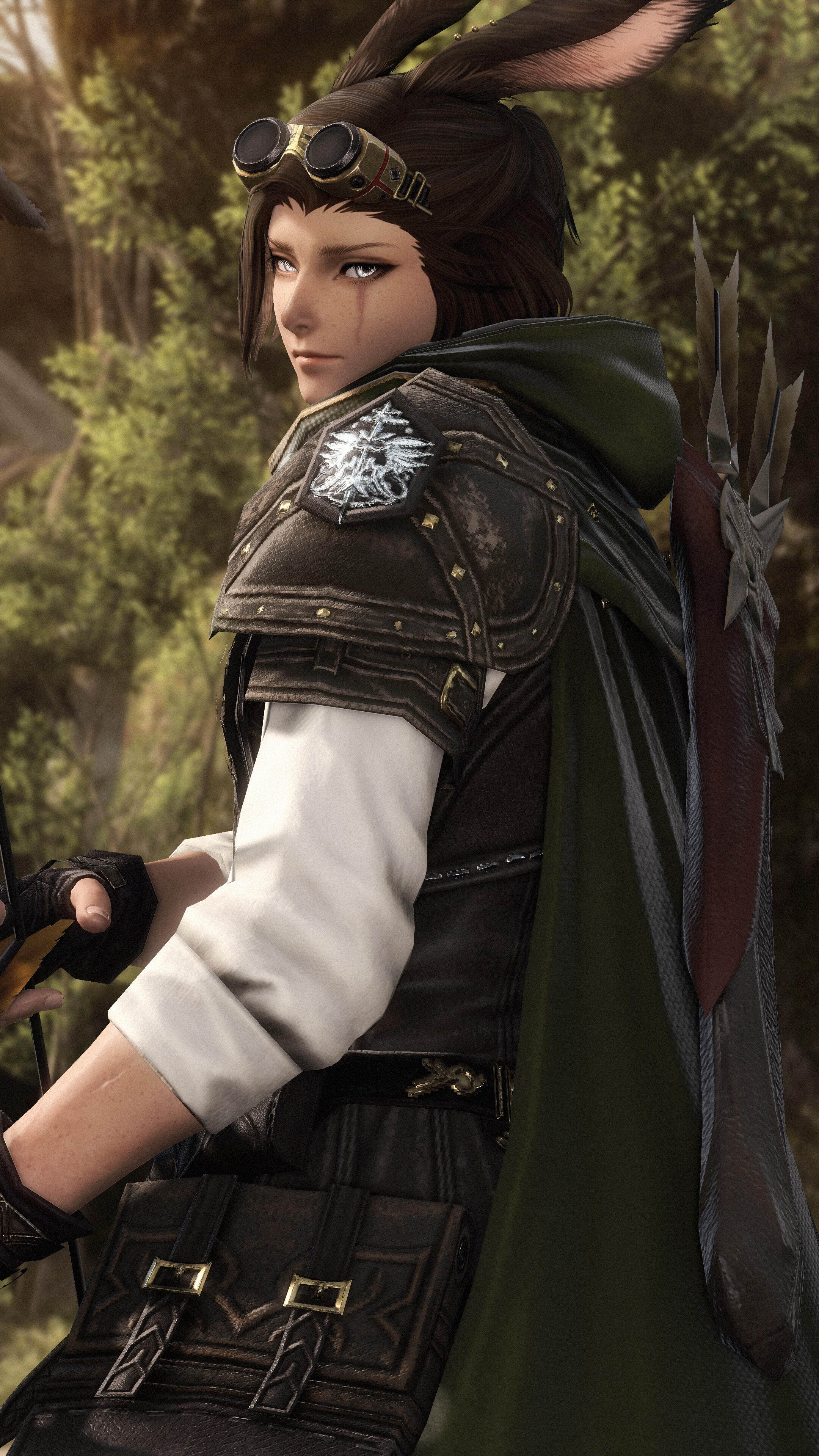 Over a decade after having been taken forcefully from their homeland, the sharp-eyed Viera finds themselves at the gates of Gridania. Stories around the campfires of Gangos about roaming elementals, a dense, at times dangerous forest and nigh countless plants and beasts alike drew Loi'ven in - a better alternative than wandering aimlessly after Bozja's liberation, it seems.Loi'ven quickly figures city life is not meant for them. Too loud, too bustling, too many intermingling scents. Soon they find shelter among the trees again, settling down in a small cottage deep in the woods where their Vieran nature allows them to walk unharmed among the tall trees, earning their coin as a bounty hunter.
