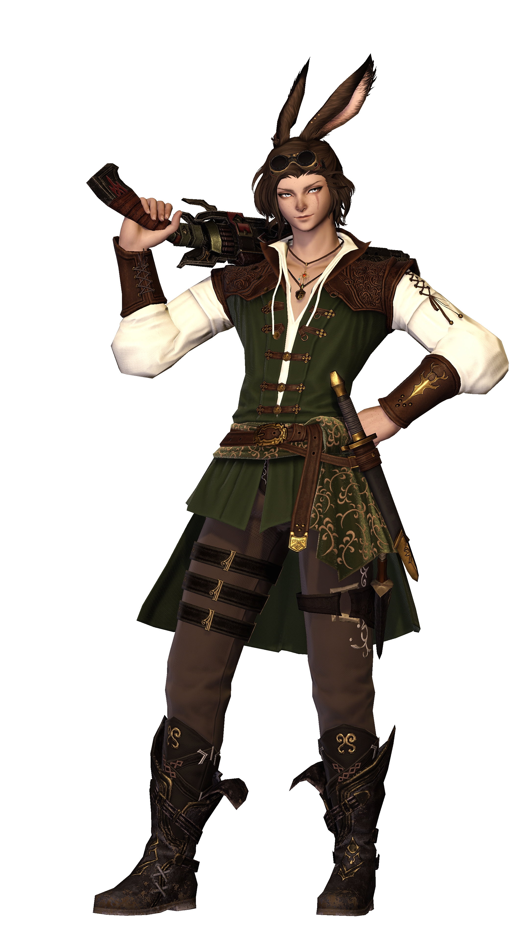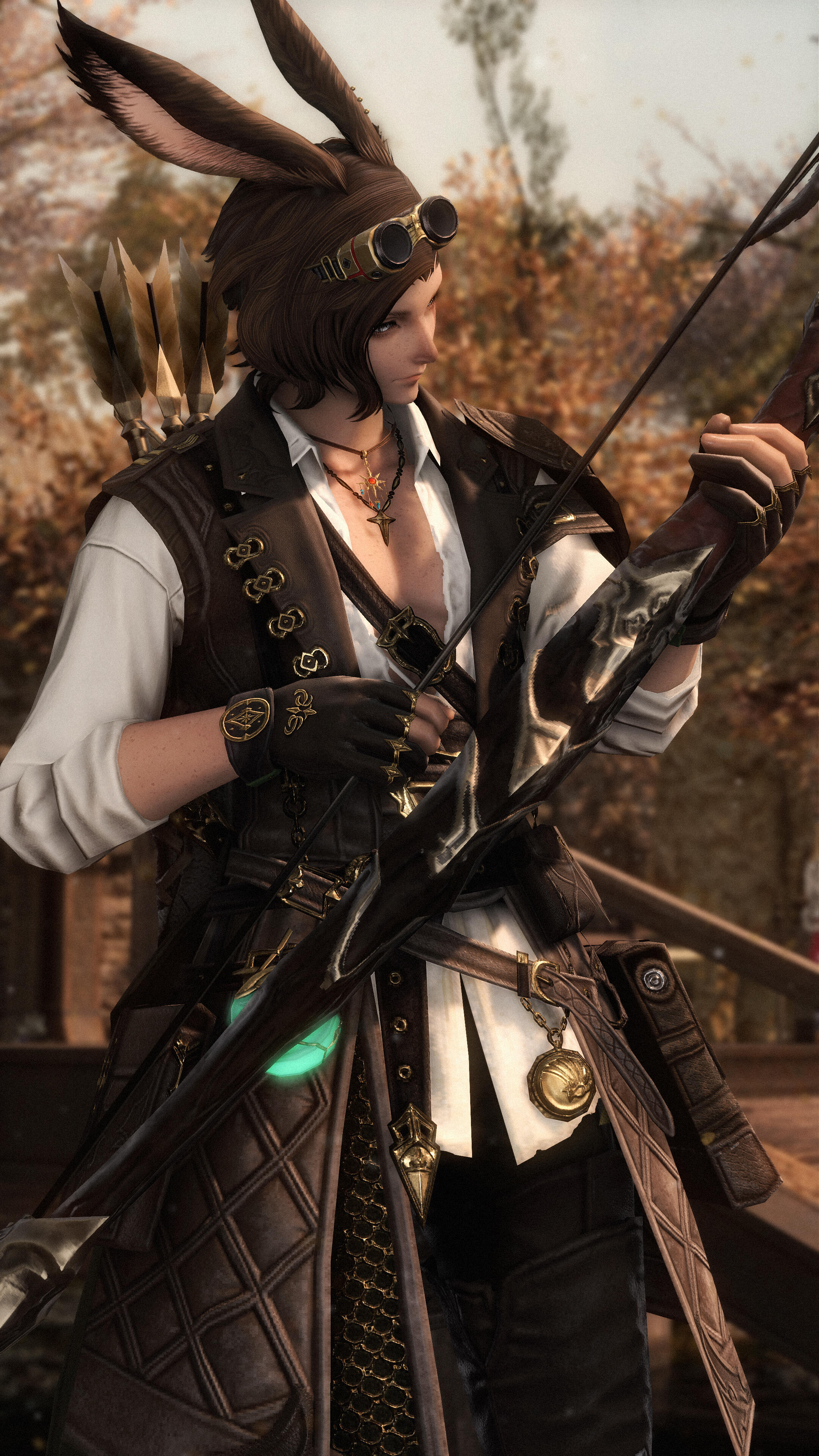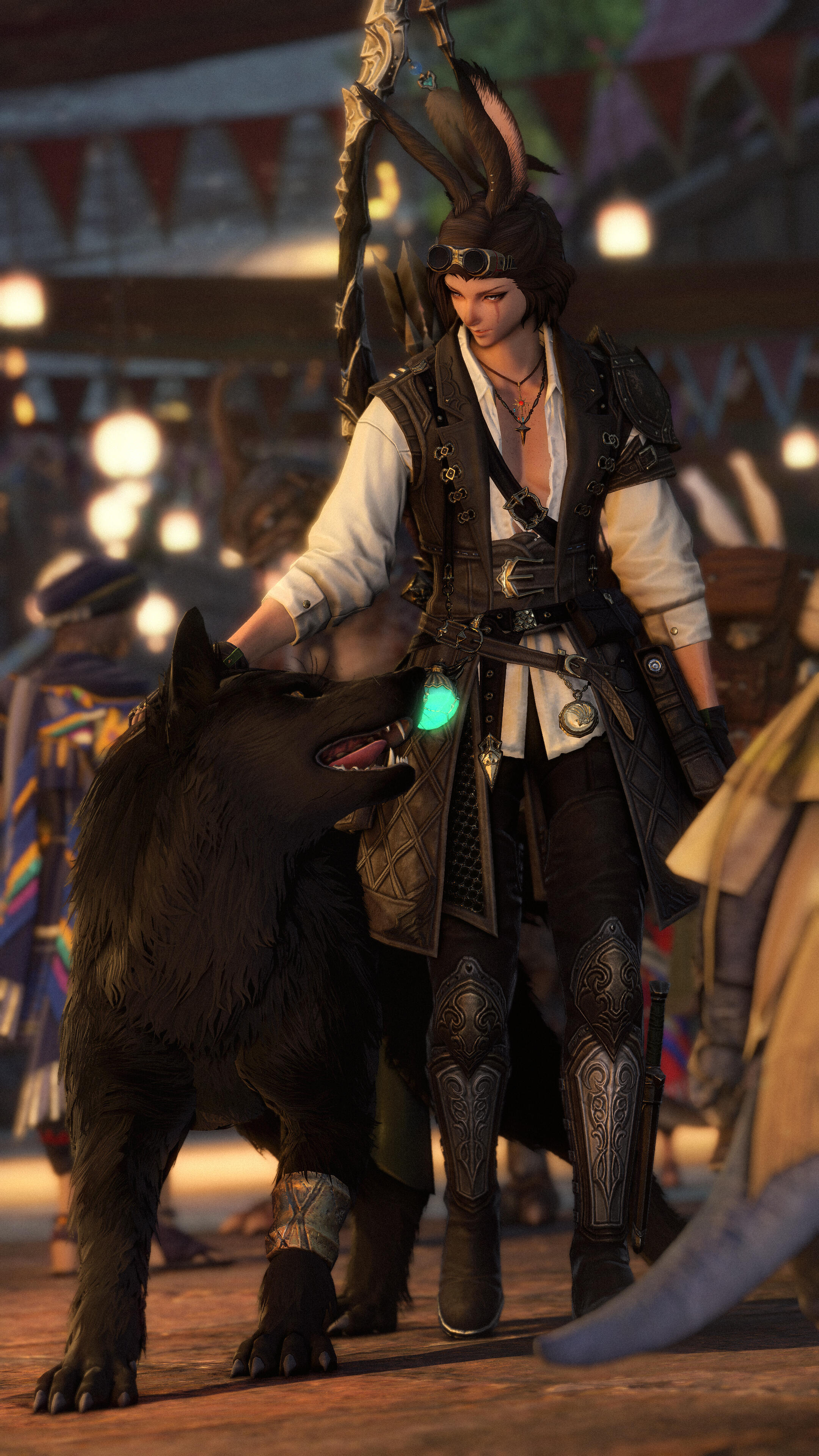 Over a decade after having been taken forcefully from their homeland, the sharp-eyed Viera finds themselves at the gates of Gridania. Stories around the campfires of Gangos about roaming elementals, a dense, at times dangerous forest and nigh countless plants and beasts alike drew Loi'ven in - a better alternative than wandering aimlessly after Bozja's liberation, it seems.Loi'ven quickly figures city life is not meant for them. Too loud, too bustling, too many intermingling scents. Soon they find shelter among the trees again, settling down in a small cottage deep in the woods where their Vieran nature allows them to walk unharmed among the tall trees, earning their coin as a bounty hunter.