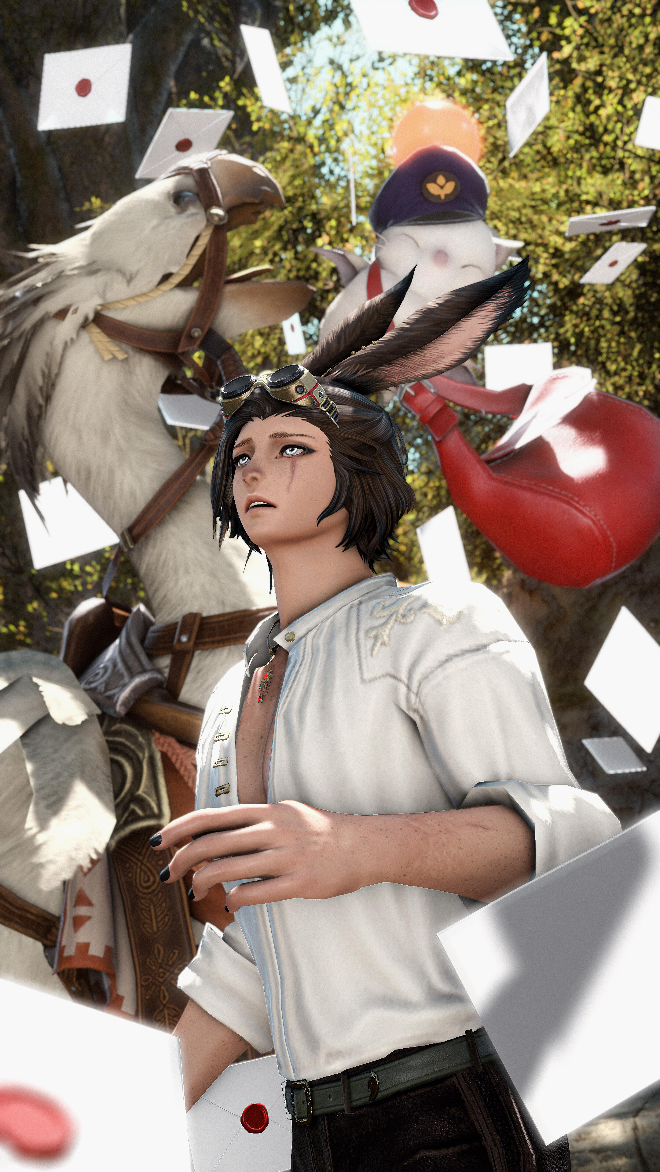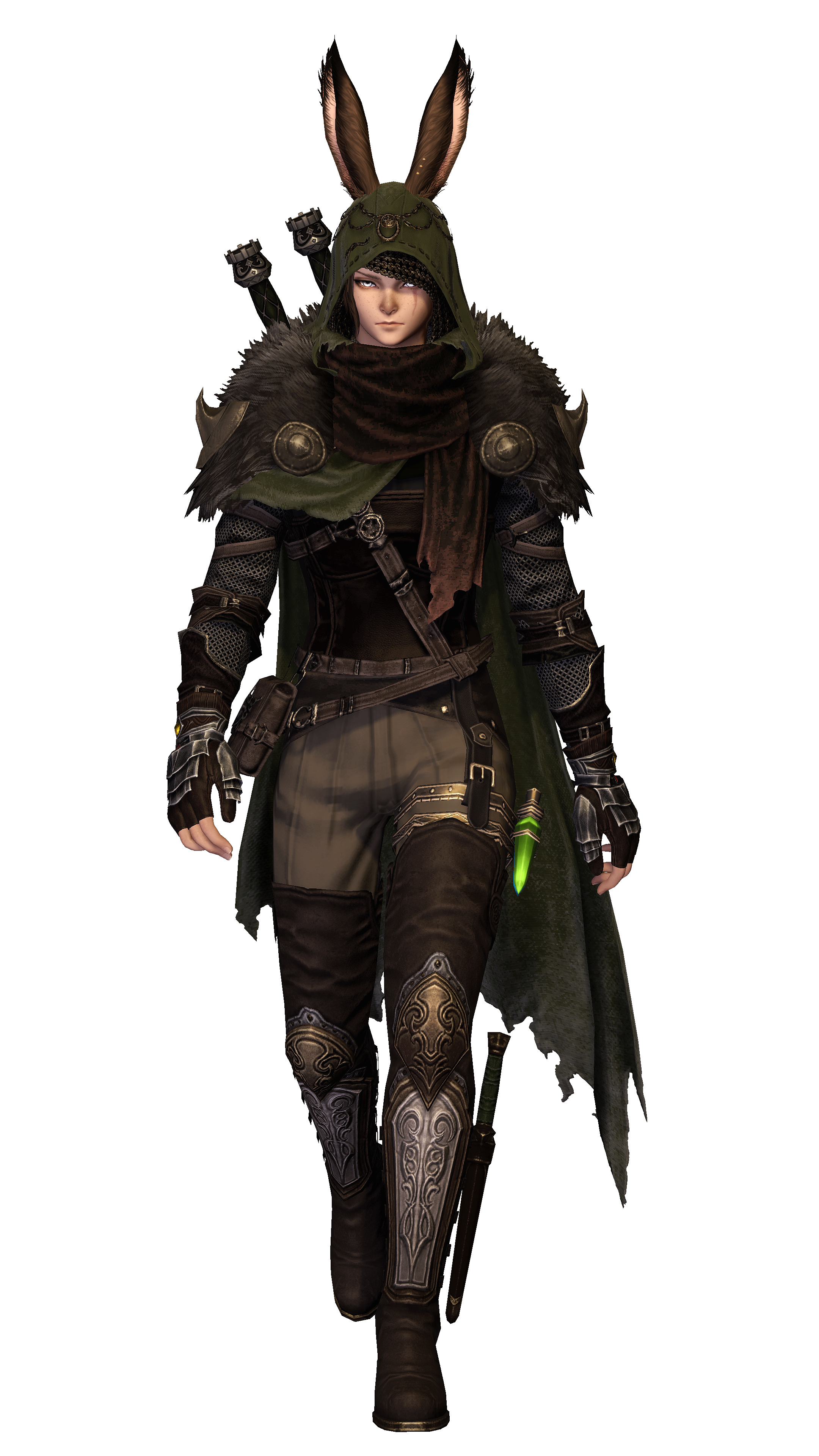 What one might hear about them. Stoic, standoffish and yet compassionate. Not much is known about Loi'ven Rendan, a tall and slender Viera usually clad in earthen tones, followed by a snow white chocobo. If someone needs a bounty dispatched or hunted down, few are better suited than Loi'ven. Quick with a bow, swords or a gunblade - or if needs be a dagger and sharp fangs - they will make sure their bounty meets their end, whatever that may be. Having traveled far and wide, they also possess invaluable knowledge about countless plants. If someone finds themselves in their good graces, they might share a thing or two to help out.