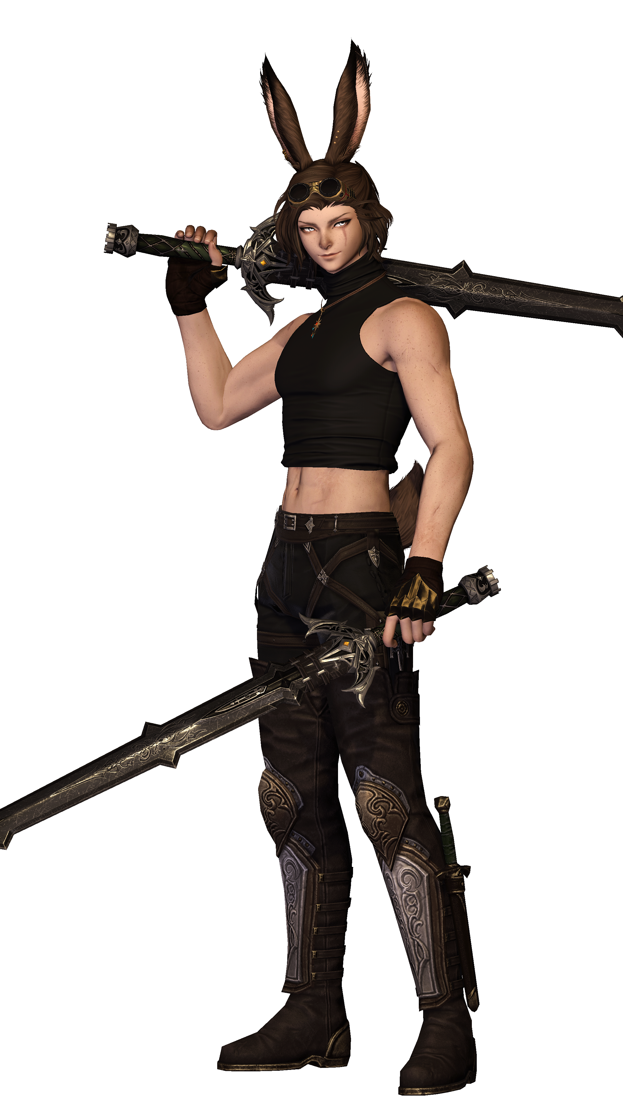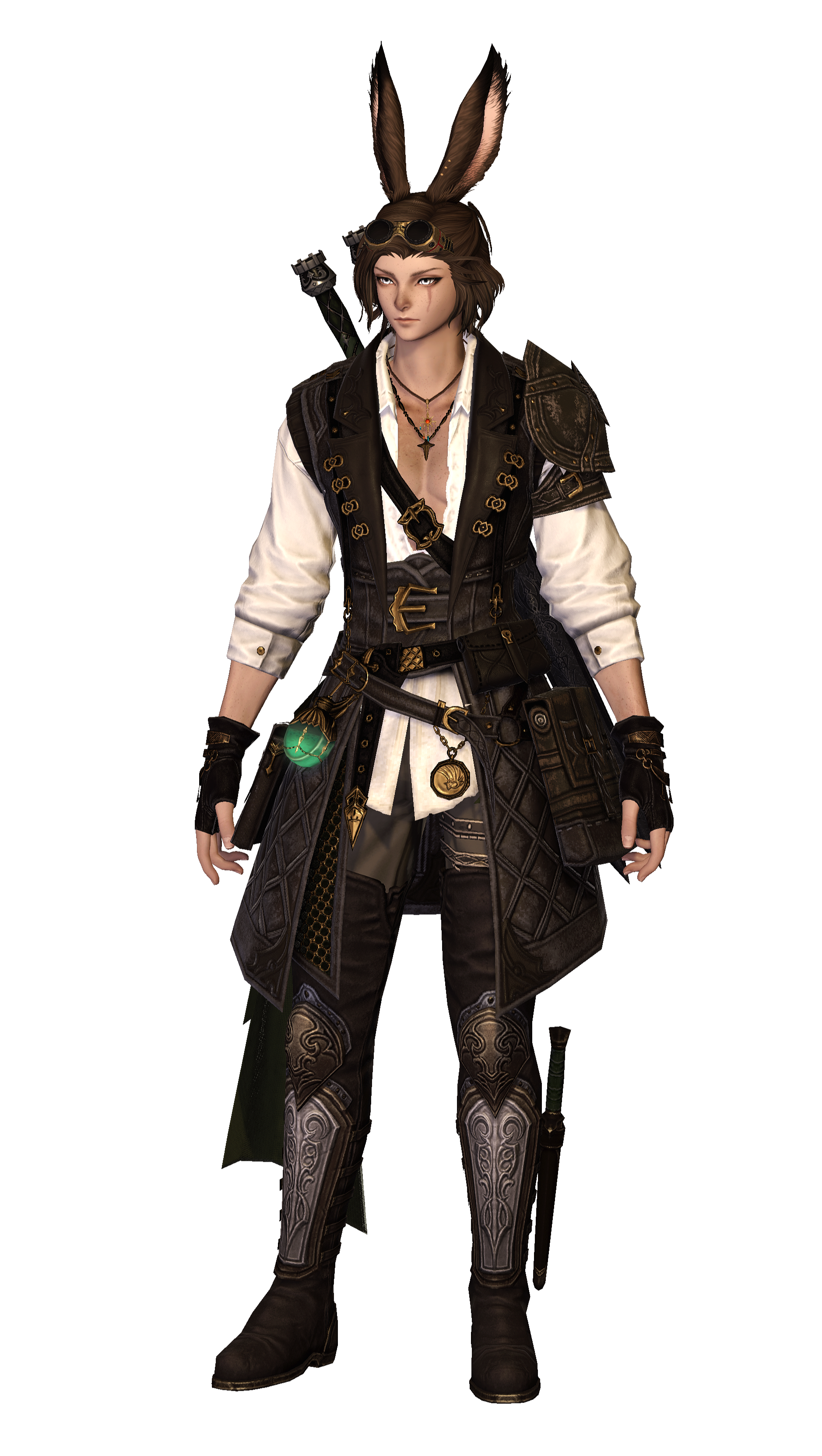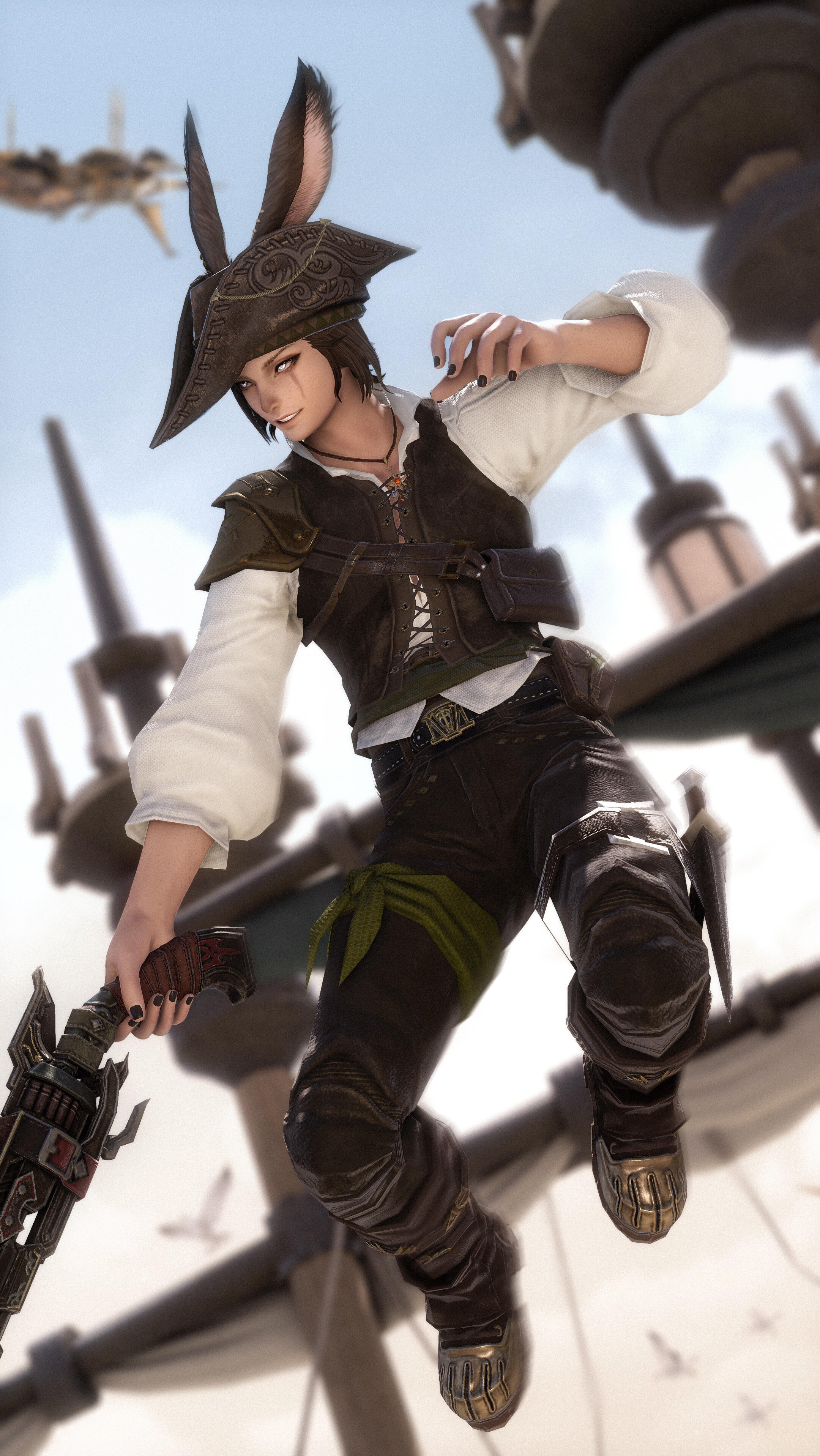 Bounty Hunter. Quick with a bow, swords or a gunblade - or if needs be a dagger and sharp fangs - they will make sure their bounty meets their end, whatever that may be. They can often be seen around Othard or Tural, looking for the next challenge. Loi'ven also isn't averse to friendly hunting challenges to prove their mettle amongst fellow bounty hunters.